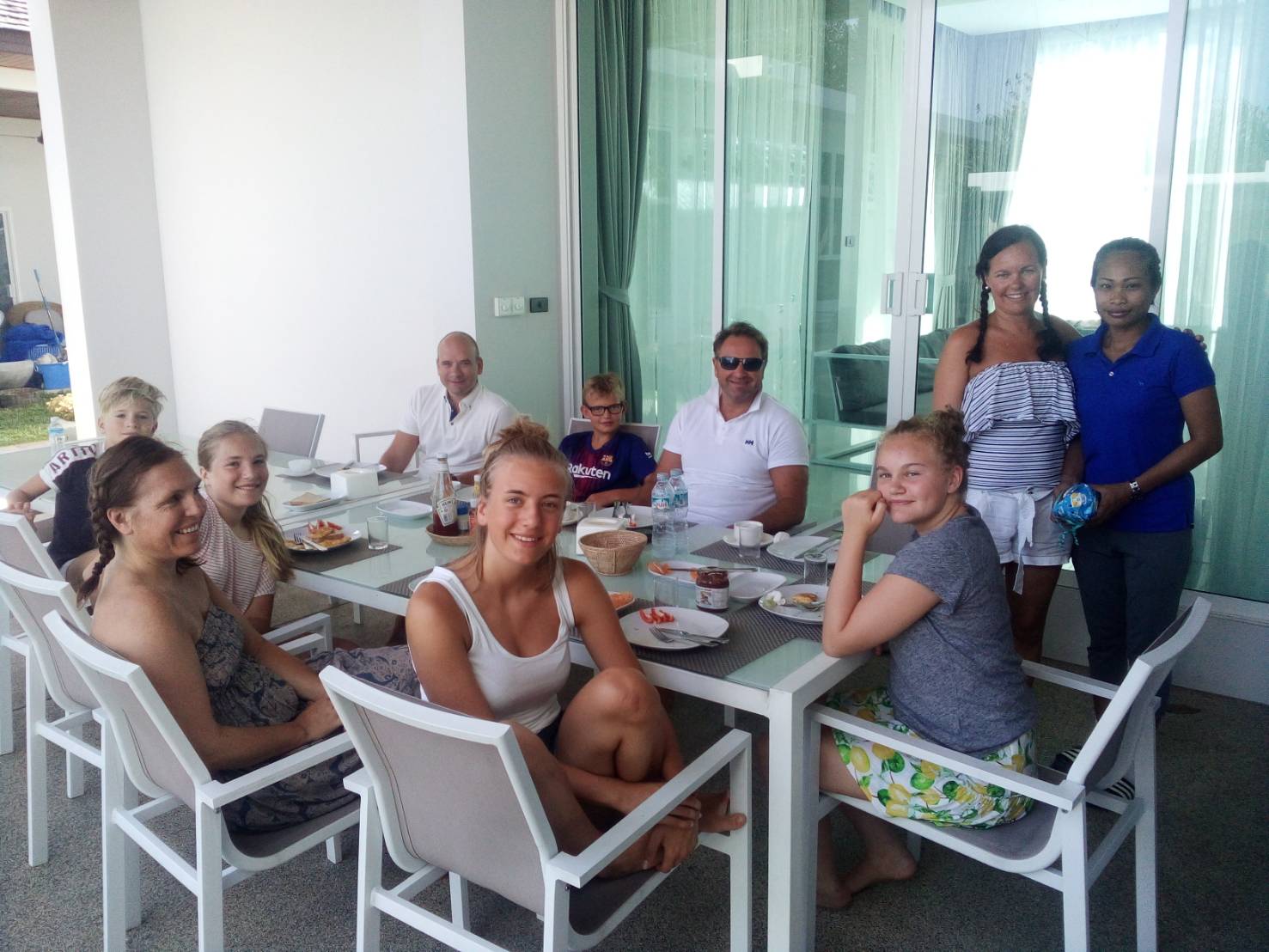 We were two families who rented this great villa for 9 days. Large room with large beautiful showers, spacious kitchen, living room and outdoor area. We were served a little different for breakfast - both omelette, thai and chinese. We went to the beach several times, both Bangtao, Surin and Nai Yang. We had a 9-seater from 7am to 7pm and it included a trip to the nearest beaches every day. Otherwise, we paid one of the staff for gasoline, so he could drive us to a restaurant or pick up a take-away in the evening. We also took massages, pedicures and manicures at the villa.