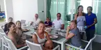 One of the children had a birthday while we were there, and then we were surprised by several artists who had a flameshow for us at the villa. This was absolutely amazing! We ate a lot of good food both outside or we ordered take away- this was delicious when we had been on the beach for a whole day!
